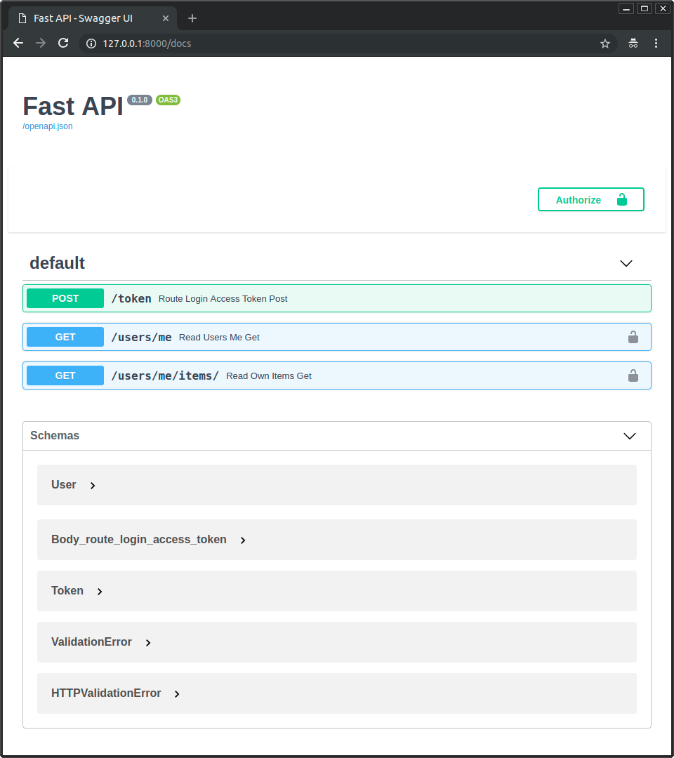 Execute o servidor e vá para a documentação: http://127.0.0.1:8000/docs.