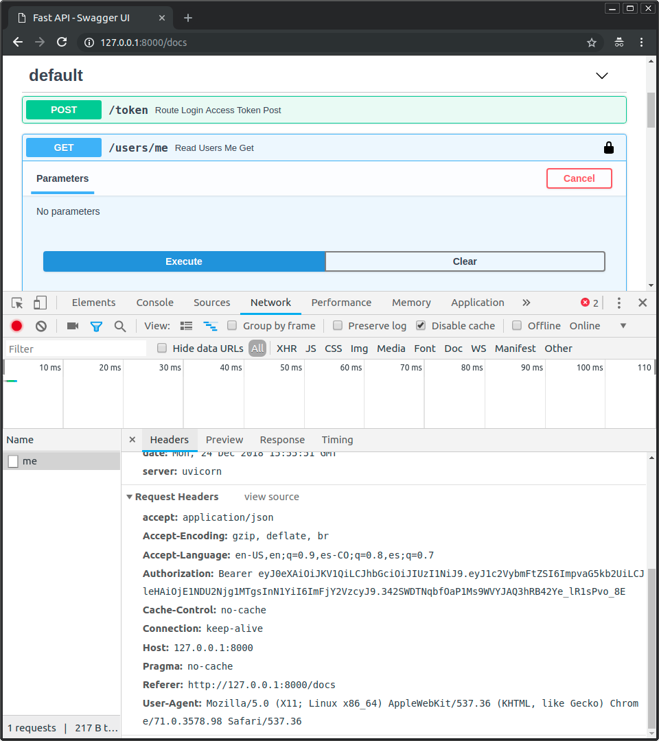 Perceba que o cabeçalho Authorization, com o valor que começa com Bearer.